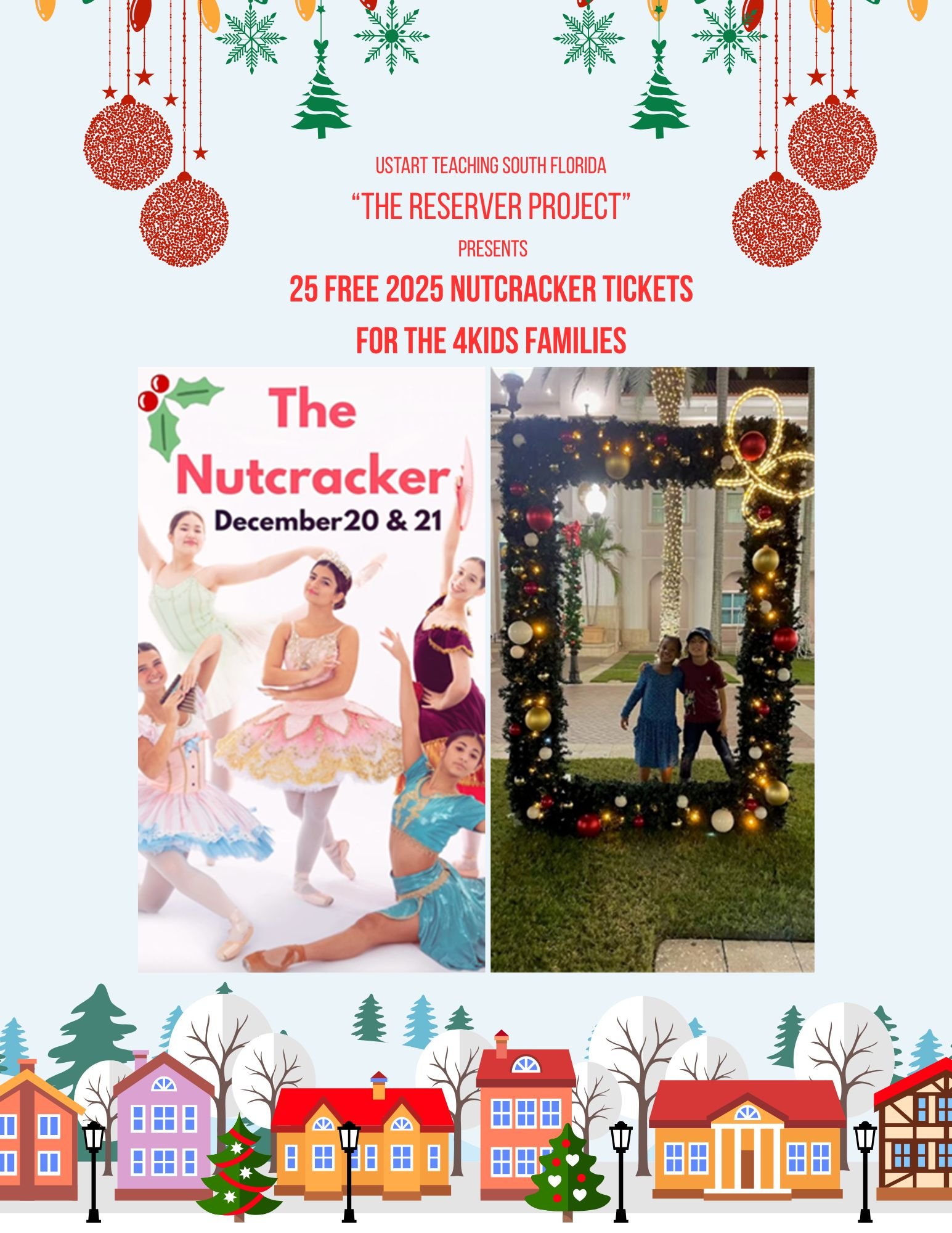 During the 2025 holiday season, The Reservoir Project provided 4KIDS families with 25 complimentary tickets to a Nutcracker performance at the Miramar Cultural Center, offering children and parents a memorable holiday experience filled with the magic of storytelling, ballet, and classical music. Through this special outing, families enjoyed the artistry and festive spirit of The Nutcracker, creating joyful memories that blended culture, creativity, and community connection. (Pictured: principal dancers from the performance and children from 4KIDS families photographed immediately after the show through The Reservoir Project.)